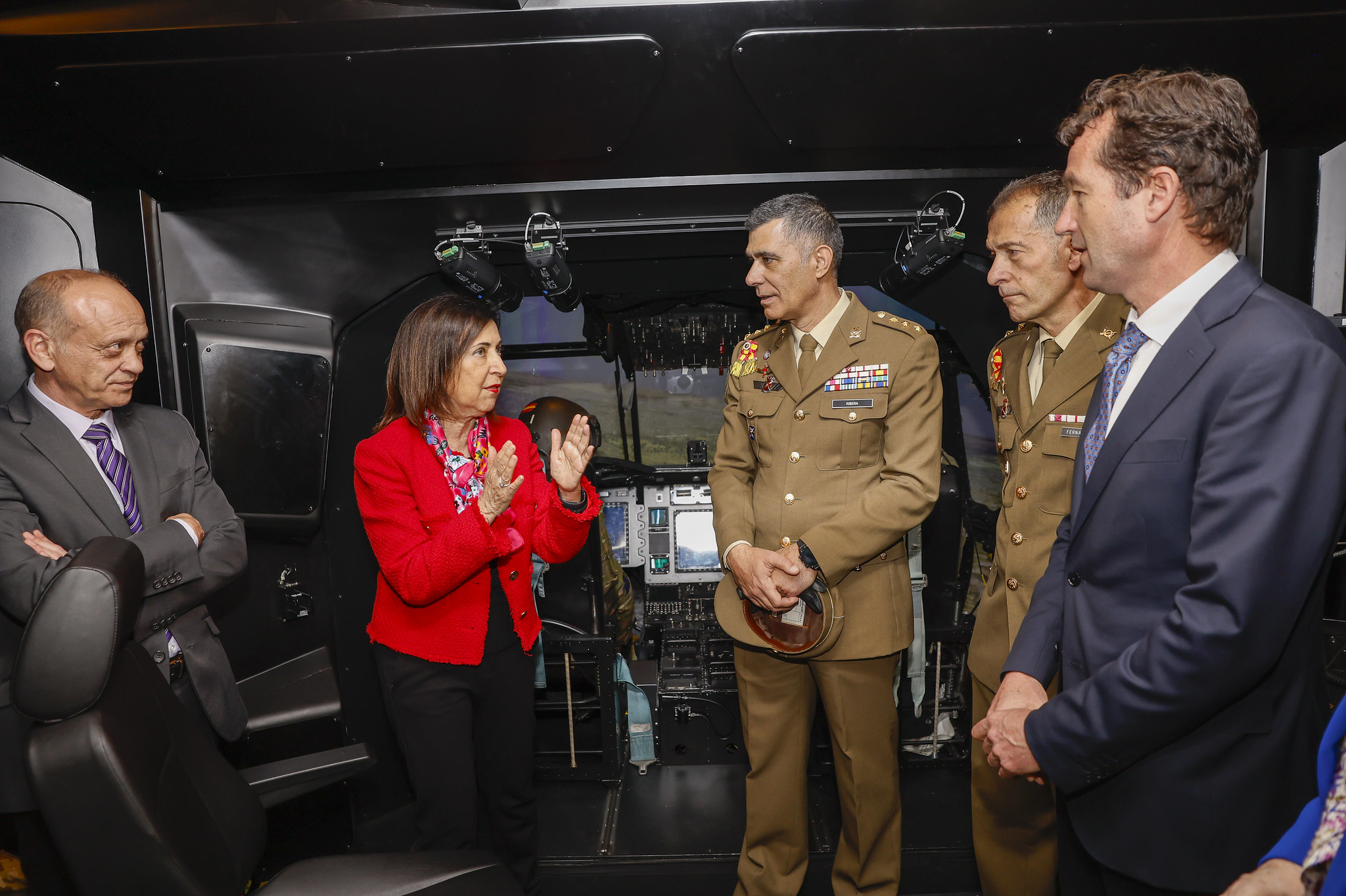 The Spanish Minister of Defense, Margarita Robles, and the Secretary of State for Defense, Amparo Valcarce, accompanied by military authorities and the Executive Chairman of Indra Group, Ángel Escribano, have visited the Helicopter Simulation Center (CESIHEL) of the Army Aviation Academy (ACAVIET), where they visited the Chinook CH-47F helicopter simulator developed by Indra, the first one manufactured in Europe for this version of the aircraft.