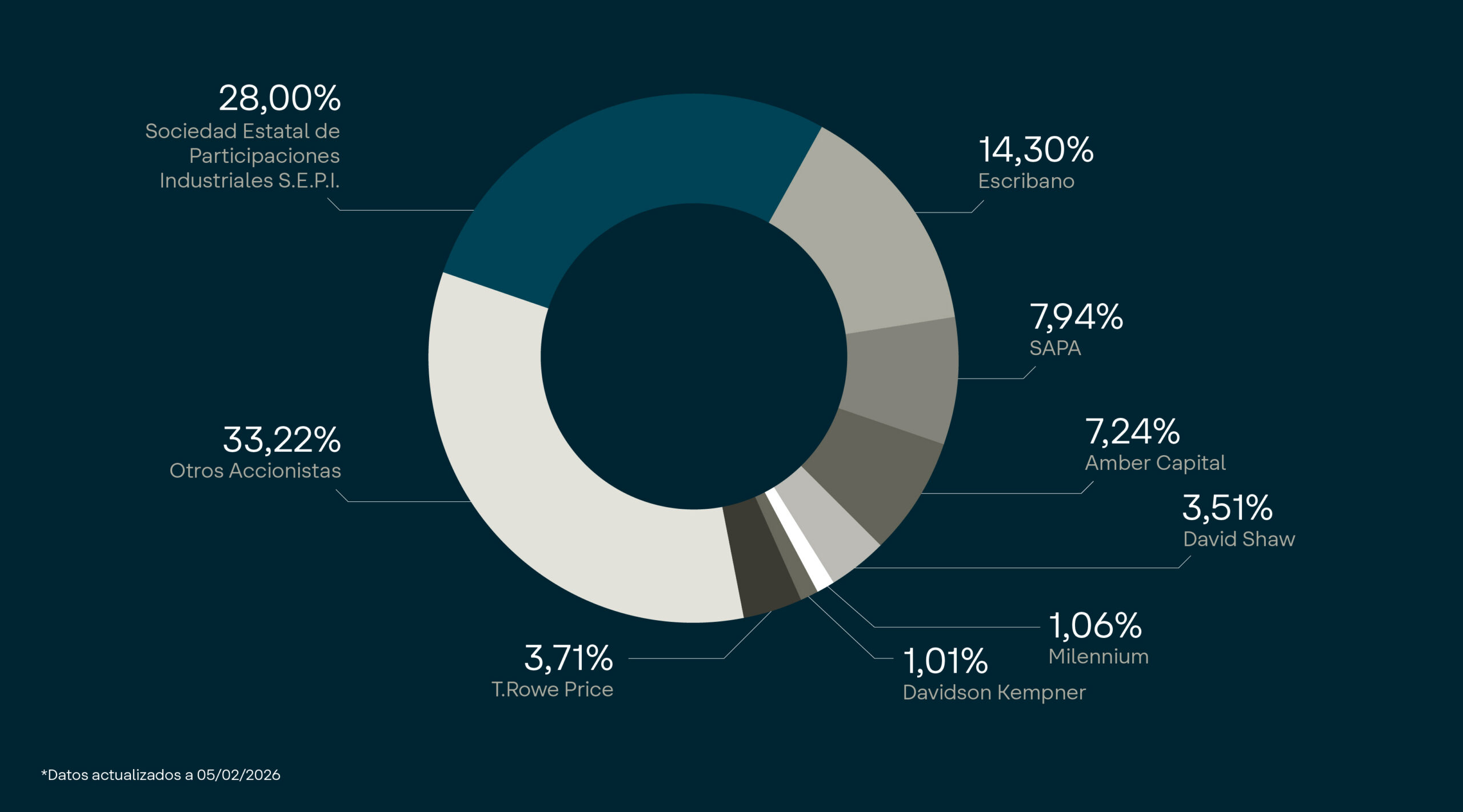 Icon IsotypeAccionistas e InversoresInformación económico-financiera e informe de sostenibilidadCuentas anuales e informe de sostenibilidadInforme público trimestralPeriodo medio de pagos a proveedoresDetalles conference call resultados 2025Gobierno corporativoÓrganos de gobierno y comité de direcciónEstatutos de la sociedadReglamentos internosPolíticas corporativasEstructura accionarialAutocarteraInformes anualesJunta General de AccionistasModificaciones estructuralesOtra información de interésComunicaciones a la CNMVInformación PrivilegiadaOtra Información RelevanteHechos Relevantes comunicados hasta el 8 de febrero de 2020Operaciones VinculadasResultados, publicaciones y eventosInforme público trimestralPresentaciones a inversoresAgenda del inversorInformación bursátilCotizaciónLa acción y su capital socialVolverCerrar