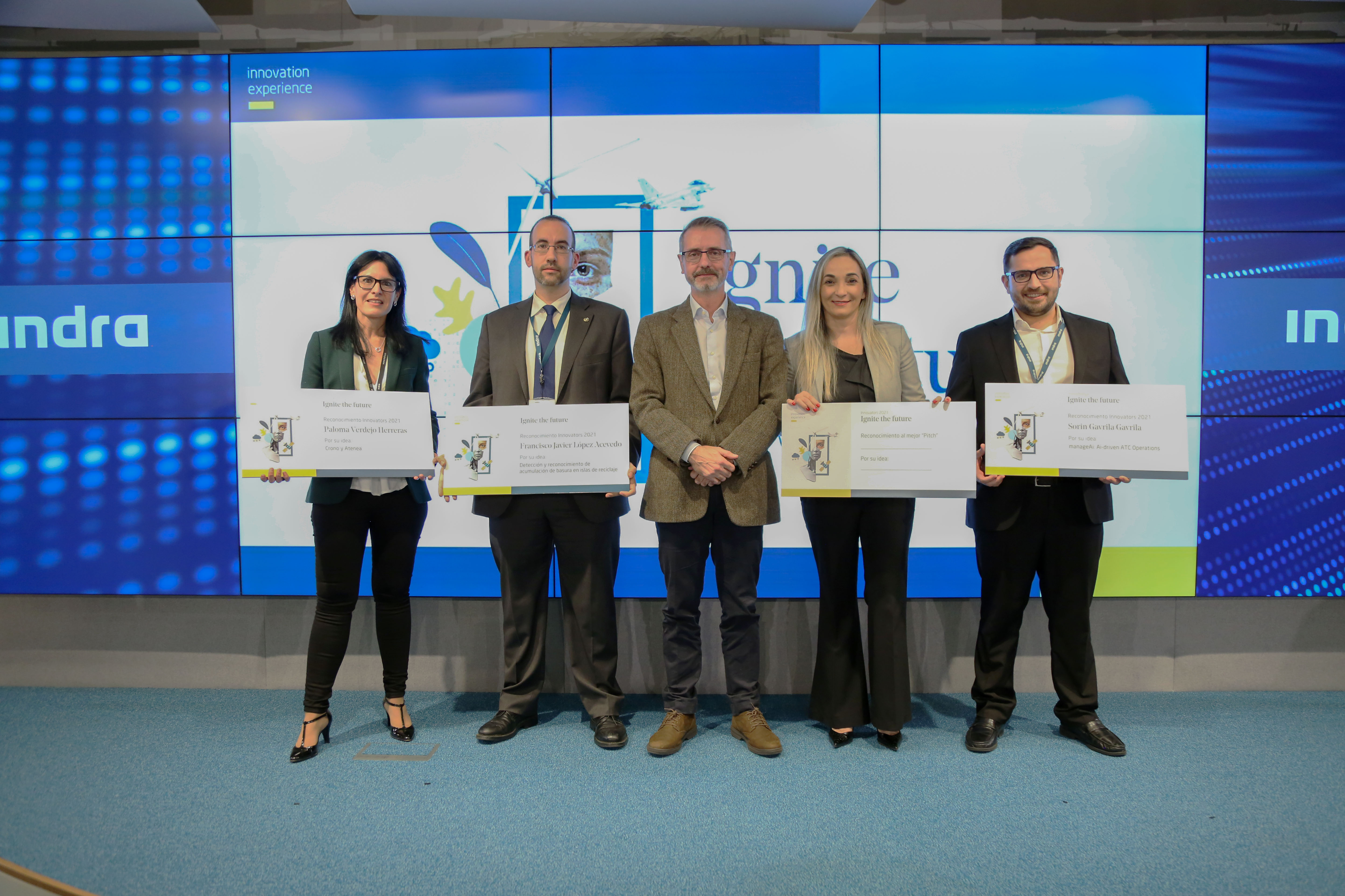 Indra premia ideas de sus intraemprededores para hacer más sostenible el tráfico aéreo, mejorar la gestión de residuos y ayudar a pacientes tras un ictus