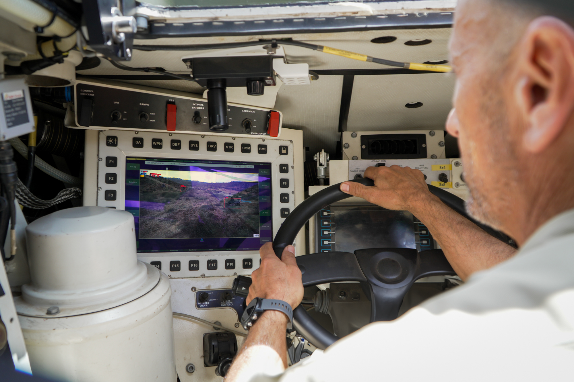 El sistema Incorpora distintos algoritmos de inteligencia artificial que analizan las imágenes recogidas por las cámaras de rango visible, nocturno e infrarrojo dispuestas alrededor del vehículo. Consigue incrementar así el rango de alcance en la detección e identificación de personas y plataformas, discriminando si son amigas o enemigas y evaluando el grado de amenaza que representan, así como el riesgo de sufrir emboscadas, planteando además posibles medidas de protección y líneas de acción para cumplir con la misión.